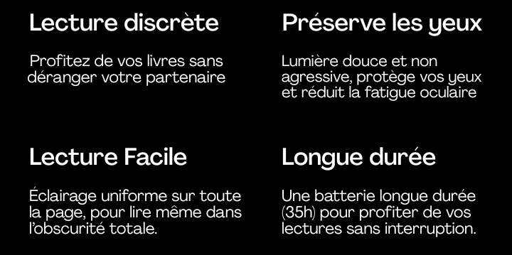 La batterie offre une longue autonomie,(35h) vous permettant de lire plusieurs heures d’affilée sans recharger.